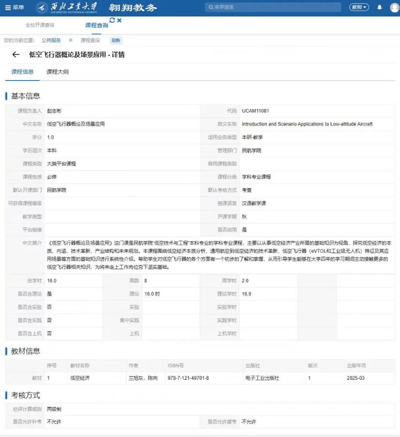 智库从西北工业大学获悉,《低空经济——新质生产力的一种新经济结构》一书已入选西北工业大学首届招生的“低空技术与工程”本科专业课程《低空飞行器概论及场景应用》教材。