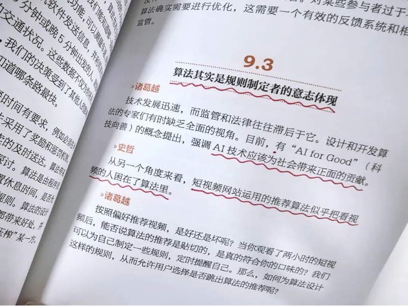 第三,人文关怀与科技伦理的探索。本书不仅关注技术本身,还深入探讨了科技发展带来的社会影响和伦理问题。例如,“情感计算”一章探讨了技术如何帮助人们更好地理解自己的情绪状态,同时提出了隐私保护的重要性。“人工智能助手”一章探讨了AI与人类的信任关系,以及如何在提高效率的同时保持人类的决策主导权。“有关AI 艺术创作的讨论”一章讨论了人工智能在艺术创作中的角色,以及如何平衡技术创新和人类创造力。“未来算法”一章提出了“算法其实是规则制定者的意志体现”的观点,引发读者对算法公平性和透明度的思考。这种对人文关怀和伦理问题的探讨,使本书不仅是一本科技著作,更是一本引导读者思考科技与人类社会关系的哲学作品。