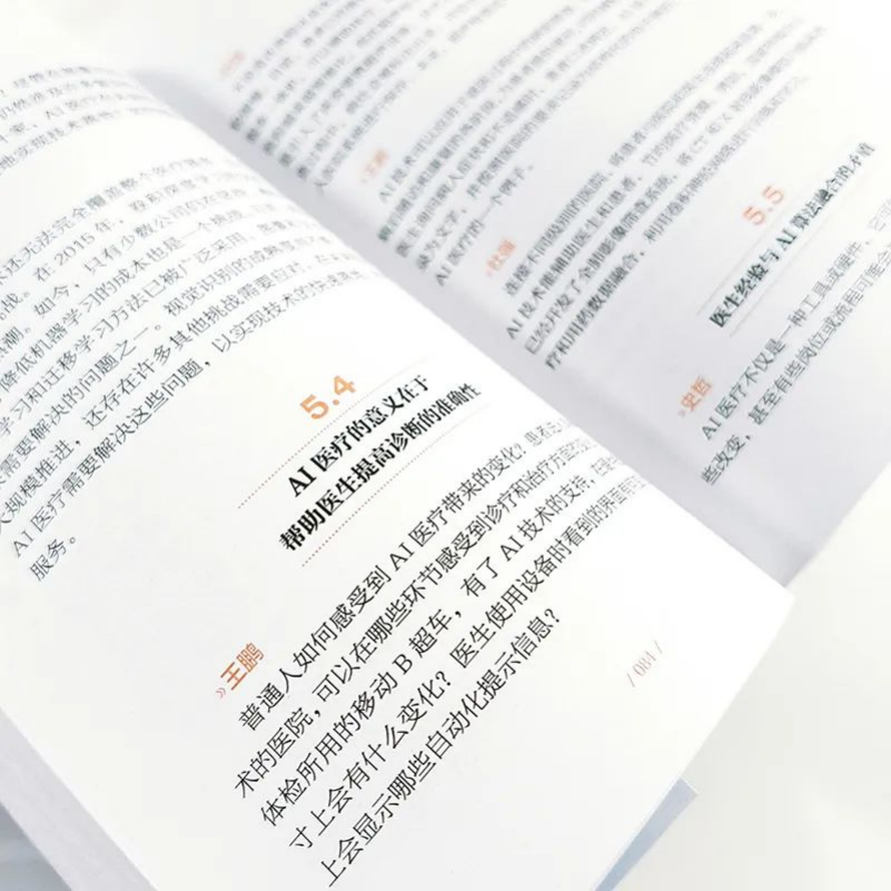 第三,科技普惠理念始终一贯。王鹏和史哲不仅关心技术本身,更关心技术如何服务于社会的基本需求。所以,贯穿全书的核心理念是科技应当普惠大众。王鹏在与吴岱妮讨论情感计算时,所关注的是如何让这项技术帮助更多普通人了解自己的情绪状态。在“AI医疗”一章,史哲提出了关于医疗资源分配的问题,关注如何让AI技术帮助解决医疗资源不均衡的社会难题。这种普惠理念在对农业AI 应用的讨论中尤为明显。当林咏华介绍AI 在农业中的应用时,王鹏和史哲都表达了对如何让这些技术帮助小农户、提高粮食产量的关注。