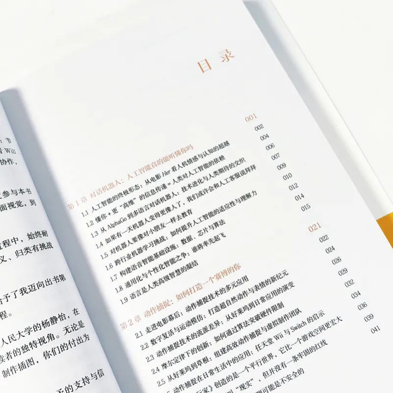 第一,跨领域的科技探索。本书涵盖了极为广泛的科技领域,包括:对话机器人、动作捕捉、AR 眼镜、精密制造、AI 医疗、AI农业、情感计算、智慧物流、未来算法、商业航天、生物医学工程、新媒体艺术、人工智能助手、自动化控制系统、AI 作曲、主动降噪、科技体育、AI 艺术创作等。书中深入探讨了这些领域之间的交叉融合。例如,在“动作捕捉”一章,讨论了如何将动作捕捉技术应用于电影特效、游戏开发、医疗康复等多个领域。“AR 眼镜”一章不仅讨论了光学技术,还涉及了芯片、算法、交互设计等多个技术领域的融合。“精密制造”一章探讨了如何将数字化、智能化技术应用于传统制造业,实现产业升级。“AI 农业”一章展示了如何将人工智能、大数据、物联网等技术应用于农业生产,提高农业的生产效率和可持续性。这种跨领域的探索不仅为读者提供了全面了解当代科技发展趋势的窗口,还展示了不同技术领域之间的联系和互补性,启发读者思考科技创新的无限可能。