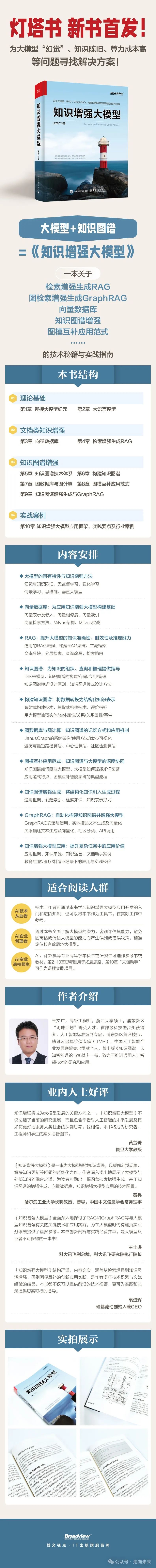 相比之下,检索增强生成(RAG)采取了更为动态的方法。与直接修改模型不同,RAG赋予人工智能系统在需要时(推理阶段)从外部知识源检索相关最新信息的能力。这种方法确保AI的响应始终基于最新的可用数据,而无需频繁重新训练。对于处理金融和医疗等敏感领域信息的机构而言,RAG展现出显著优势:它完美契合安全性、合规性以及实时准确性等核心诉求,相比需要大量资源投入的微调过程,RAG为提升AI交互质量提供了更灵活、更安全的实现路径。“灯塔书”《知识增强大模型》全面介绍了如何使用向量数据库、大模型、Elasticsearch来构建检索增强生成RAG的AI系统。
