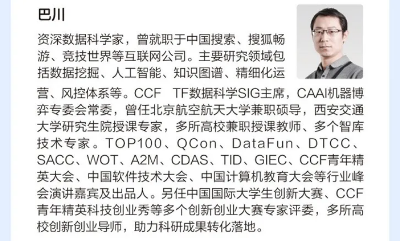 巴川,资深数据科学家,CCFTF数据科学SIG主席、高校兼职硕导、创新创业导师,拥有多年工业界大数据技术经验。作者团队,不空谈理论,而是将实际工作中所需、所用的关键技术、最佳实践与踩坑经验融入书中,内容深度契合工程实际落地需求。
