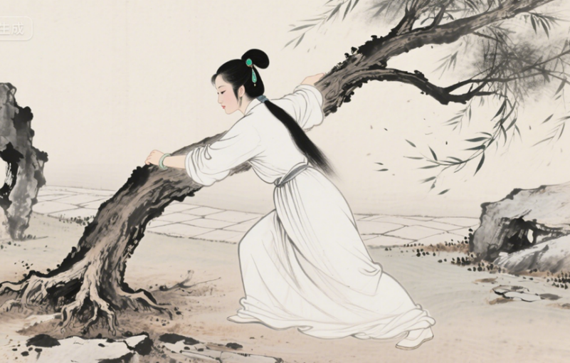 想象一下:弱柳扶风的林妹妹,纤纤玉手攥住碗口粗的杨柳根,罗裙翻飞间古树轰然倒地……