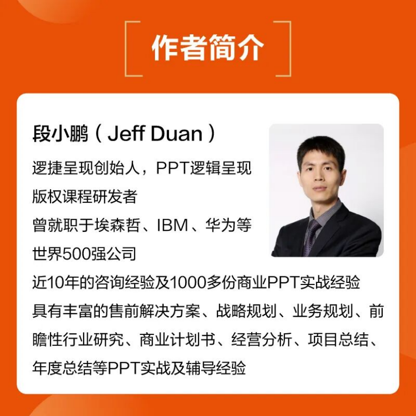 如果你正被“改稿难、汇报累”困扰,由段小鹏老师所著的《PPT 逻辑呈现:咨询顾问的高效汇报秘诀》,或许能帮你跳出“无效努力”的循环 —— 这本书将顶尖咨询公司的汇报方法论,转化为可直接落地的实战工具,帮商务人士用逻辑撬动汇报价值。