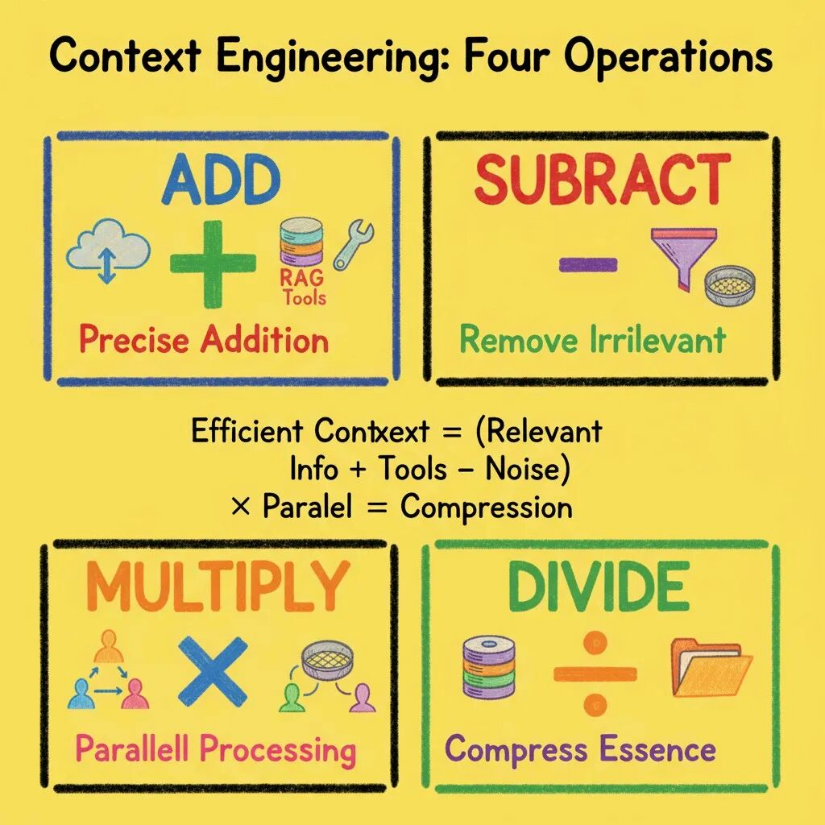 高效上下文 = (相关信息 + 必要工具 - 无关内容) × 并行处理 ÷ 智能压缩