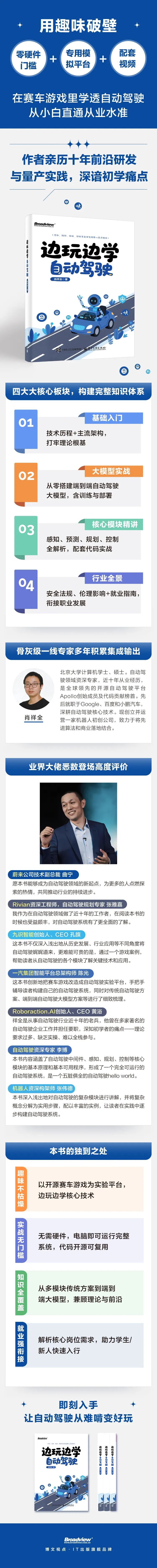 以上,如书名,作者提供了一个寓教于乐、可以上手的自动驾驶平台,便于初学者熟悉相关技术和实操。