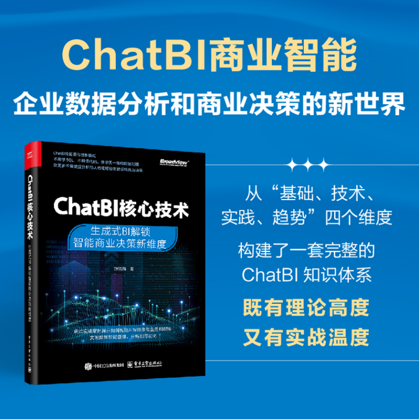 现在,《ChatBI 核心技术:生成式 BI 解锁智能商业决策新维度》已经上市。这本书不只是一本技术指南,更是你在数字化时代站稳脚跟、实现职业跃迁的 “敲门砖”。无论你是想抓住大企业的人才机遇,还是帮企业突破数据应用瓶颈,这本书都值得你优先品读。