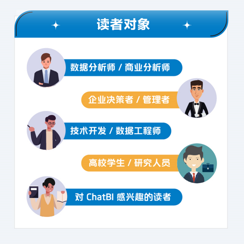 《ChatBI核心技术》是帮你突破这一困境的“利器”。对求职者来说,掌握书中的 ChatBI 实战方法,意味着你能在面试中展示“用自然语言搞定数据查询”“3 天搭建简易分析智能体”的能力,轻松匹配大企业对“懂业务 + 会用数据工具”人才的需求;对在职者而言,无论是用 ChatBI 提升工作效率,还是主导企业内部的数据分析智能化转型,都能凭借这本书建立核心竞争力,成为团队里“不可替代”的存在。