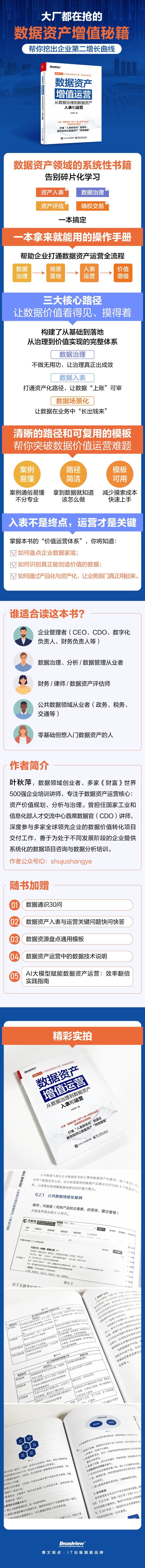 这里推荐大家阅读2025新书《数据资产增值运营》。这本书不讲虚的,不搞玄学,只谈一件事:如何让数据真正“活起来”,变成能产生收益、能沉淀能力、能持续运营的资产。
