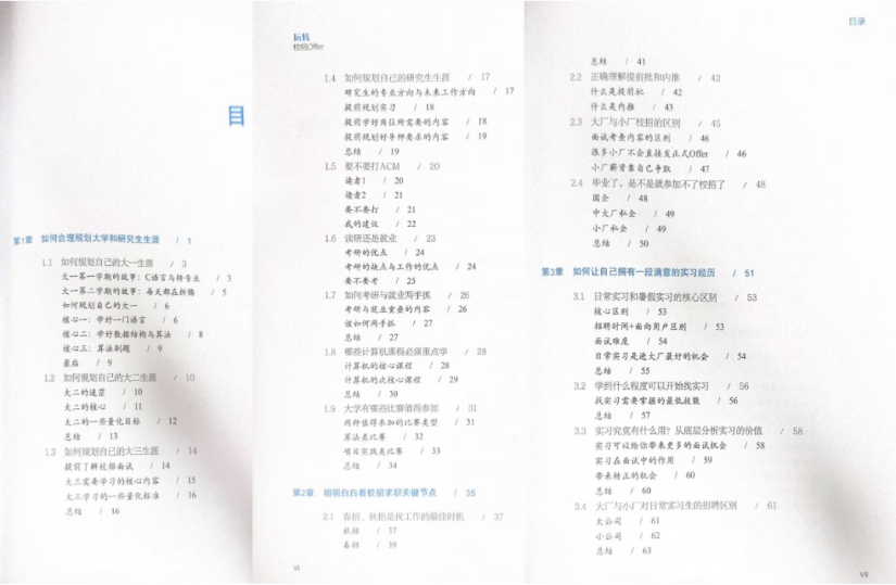 这本书从最开始的大学规划=》各种大学课程/比赛=〉实习=》校招=〉简历书写与投递=》HR面/技术面=〉如何回答问题=》学习路线以及银行科技岗等,都给出了一个相对靠谱的指导。