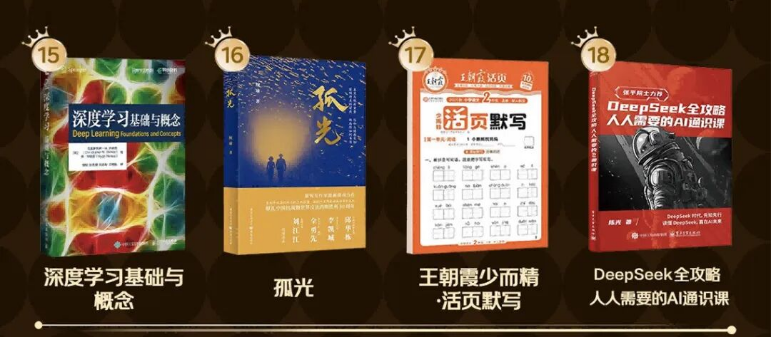 本次“2025年度百大好书”,涵盖了文学、社科、童书、教育、经管等多个门类,其中我社新书《CDA一级教材——商业数据分析》《DeepSeek全攻略》以前瞻的视角、扎实的质量紧跟市场需求,获得了读者的热烈反馈,位居总榜前列,这既是读者对我们图书的厚爱,更也对编辑老师的一种认可和褒奖!