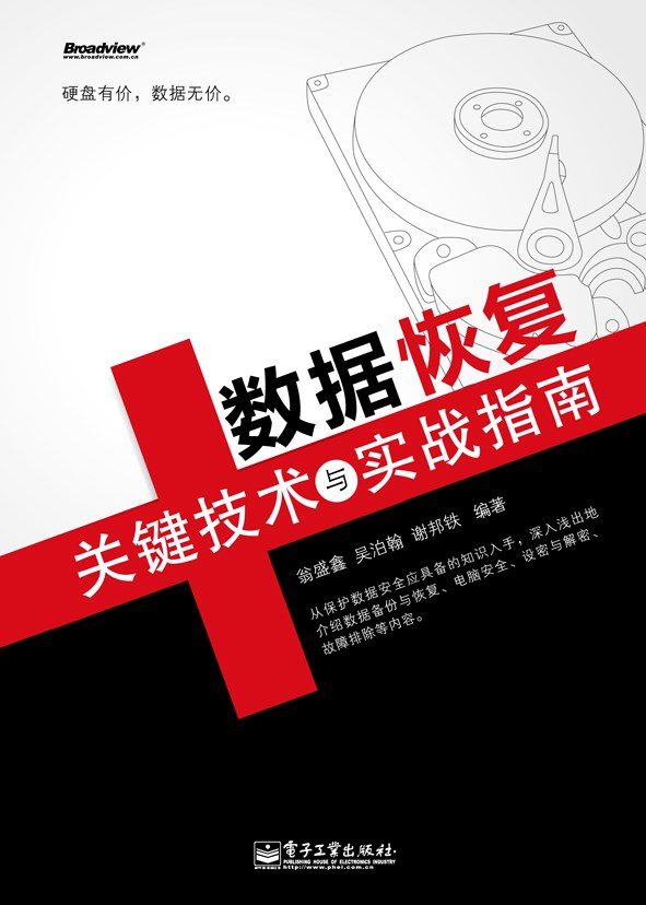 全书共分12章,内容涵盖数据恢复的原理,硬盘基础知识,硬盘拯救技术,Windows文件系统,Windows文档修复,数据安全与数据备份,软盘、光盘、数码设备,数据恢复实例,常用数据恢复软件和典型案例,操作系统无法引导的恢复,数据恢复试验场。另有专门的附录教学不会ghost这门实用基础技术的读者。