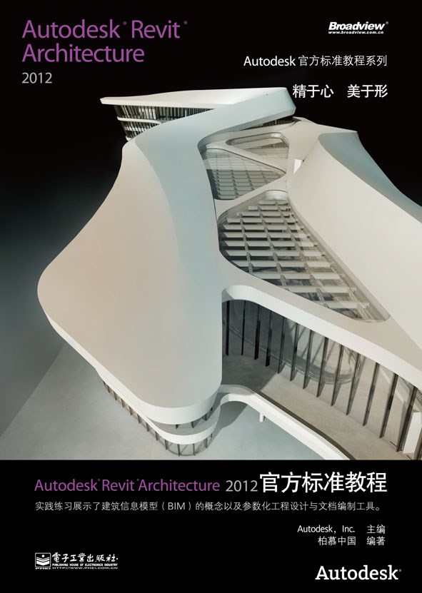 本书是Autodesk官方标准教程系列中的一本,关于Revit Architecture 2012,面向国内各个高校建筑专业学员及建筑行业从业人员,作者黄亚斌,原Autodesk团队成员,后成立柏慕中国,为国内BIM领域第一人。