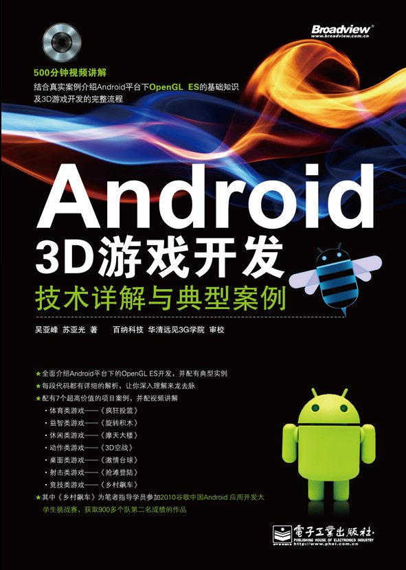 本书共分2篇,第1篇为基础篇,首先向读者介绍了Android和当前流行游戏的相关信息,然后向读者主要介绍了OPENGL ES 3D开发的相关知识,同时还介绍了游戏开发中对数学和物理知识的应用以及传感器应用开发的知识;