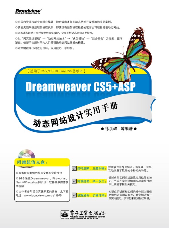 本书全面、翔实地介绍了使用Dreamweaver +ASP进行动态网站开发的具体方法与步骤。本书从网站基础知识开始,由浅入深、循序渐进地介绍了动态网站的相关知识,引导读者从零开始,一步步了解、掌握动态网页制作和动态网站设计的全过程。全书大致分为网页设计基础篇、动态网站技术篇、动态网站典型模块篇、动态网站综合案例篇和附录篇5部分,详细介绍了Dreamweaver CS5的使用方法、ASP动态网页编程技术及数据库的基本操作等内容。