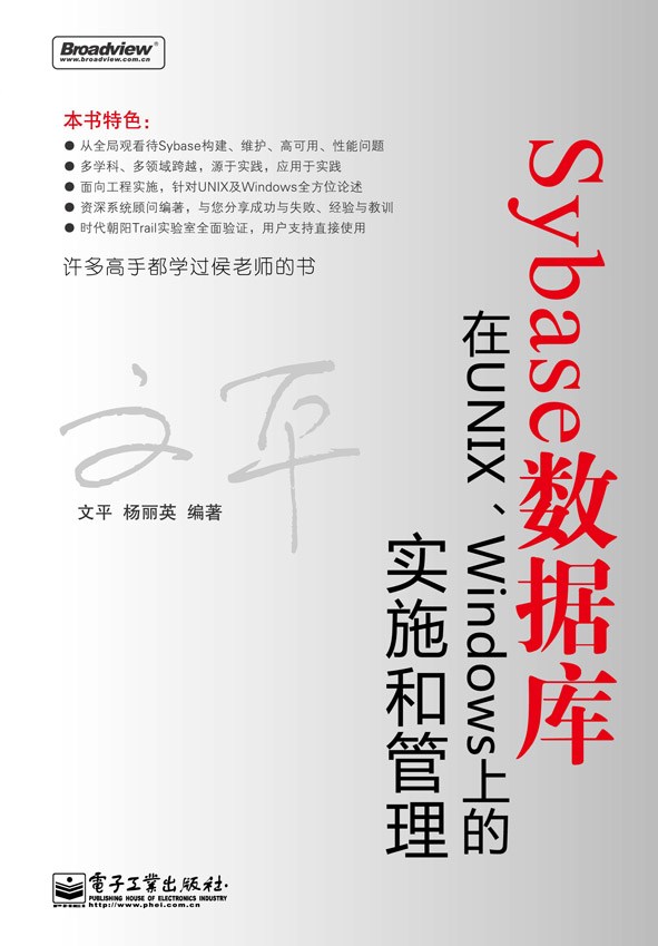 本选题将面向Sybase广大的用户群体,针对Sybase ASE数据库在管理和维护方面的技术和业务予以描述。内容从熟悉数据库结构开始,涉及操作系统设置、ASE数据库安装、配置、使用、维护、优化等方面。目的在于提供Sybase(在UNIX、Windows上)的用户和开发者以学习和工程参考之用。