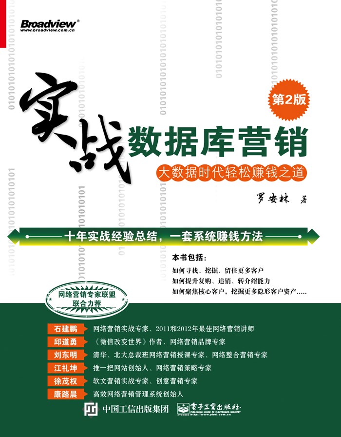 1、凝结了作者10多年数据库营销从业经验,是纯实战经验的总结。