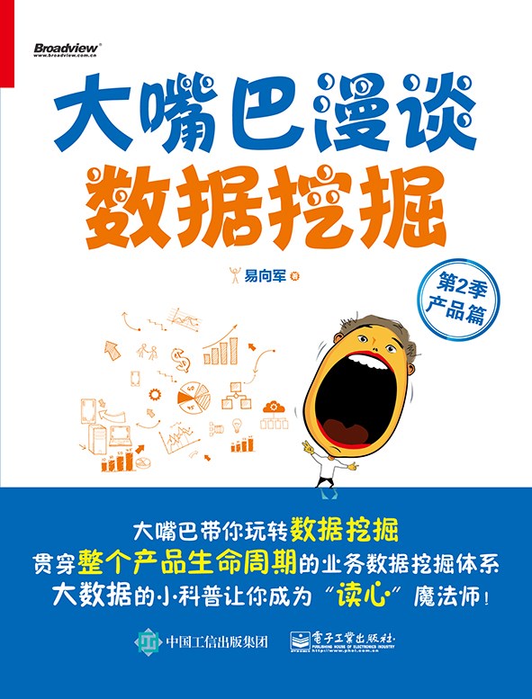 《大嘴巴漫谈数据挖掘(第2季产品篇)》沿袭第1季图+文的轻松易懂的写作形式,以产品构想、原型设计、测试、上市商用的产品生命周期为主线,用数据挖掘的手段对用户需求与市场竞争环境,以秉承以用户为中心的理念,综合技术、市场两种驱动能力,以科学严谨的方法,进行准确有效的收集并分析,为产品运营、业务支撑和数据管理等相关人员的工作提供系统化的指导,进一步辅助企业管理人员解决经营决策中所面临的问题。。
