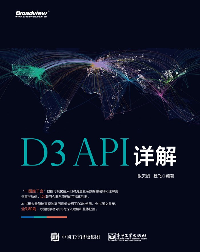 本书从基本语法特点、可视化布局、实际应用开发三个方面介绍D3,以期读者能够循序渐进掌握D3数据可视化开发的技能从而应用到科研和商业应用中。