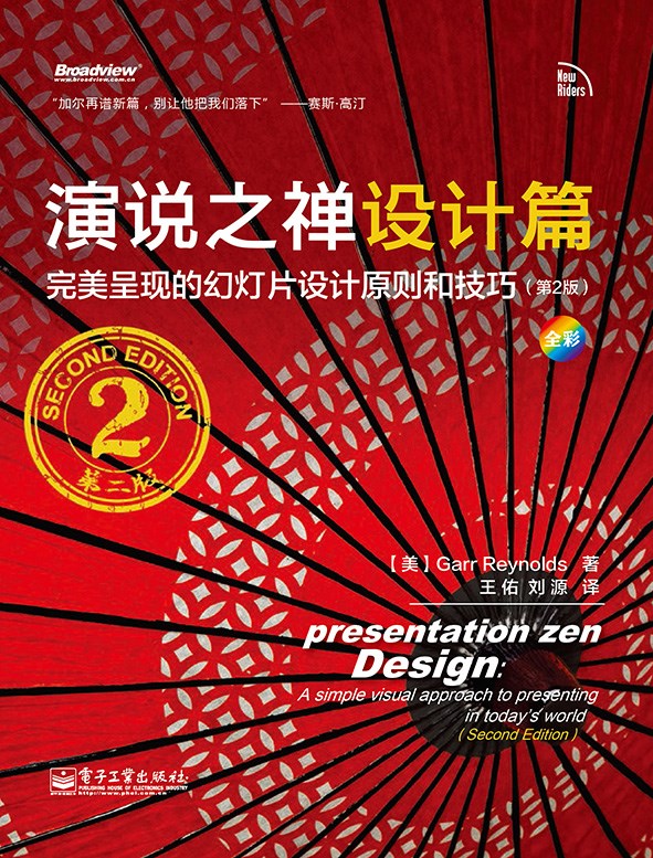 如果说《演说之禅》是为读者打开了一扇大门,告诉我们完美呈现的美好意境是什么,那么这本《演说之禅设计篇》则是为我们架设了一座实现美好意境的彩虹之桥,把这个更悦目、更雅致的幻灯片呈现世界带到了我们面前。