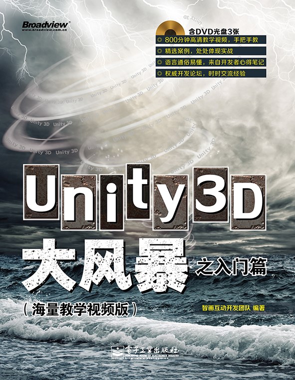 《Unity3D大风暴之入门篇(海量教学视频版)》是“Unity大风暴”系列三部曲的第一部,系统地讲解了 Unity3D的基本操作和功能实现,包括对 NGUI、uniSWF和 Scaleform等 Unity主流 GUI解决方案的解析,并配合大量实践案例,力求通过通俗易懂的语言和充实细致的配套光盘视频讲解让初学者快速入门,打下坚实的开发基础。