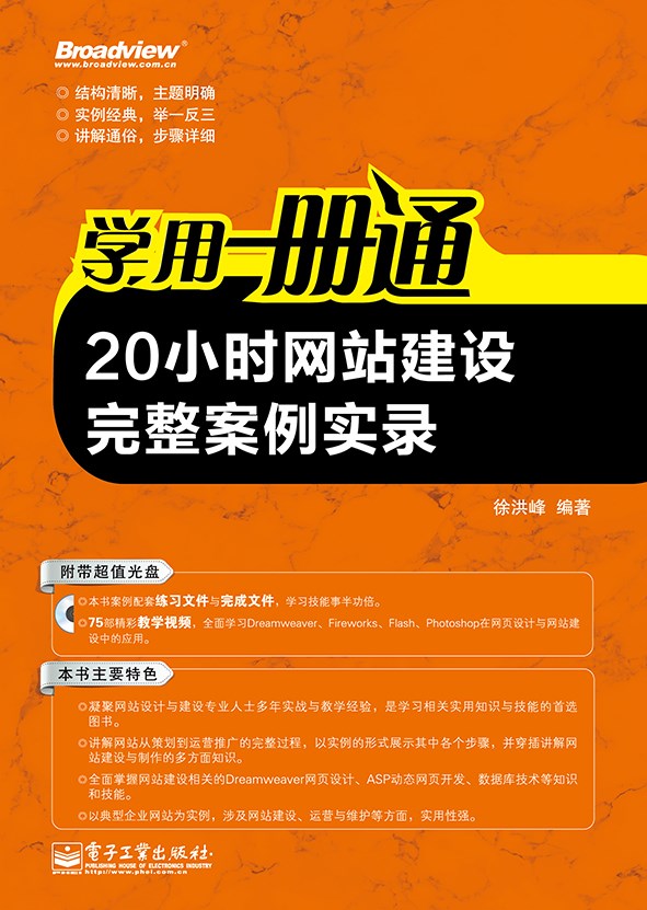 全球网站中绝大部分为中小型网站,这些网站的开发、运行与维护很可能只有一个或几个技术人员来完成。这种情况下,就要求技术人员全面掌握网站建设各个环节的综合技术。基于以上原因,本书以商业网站的开发过程为流程,通过20小时的任务期限,以一小时一项任务、一小时掌握一项技能项目实战的学习模式,全面讲解了一个网站策划、制作、开发、上传及维护、推广等环节的完整过程,详细叙述了商业网站开发的一般性知识和网站建设所涉及的各方面技术和管理问题。