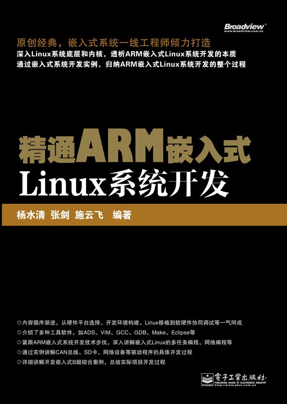 本书将包含四个方面的内容。在硬件结构中讲述了嵌入式处理器ARM的特点、嵌入式系统硬件环境的构建和ADS开发工具的使用。在系统移植中讲述了目标板软件环境的构建,主要包括Boot Loader、Linux内核、文件系统以及交叉开发环境的构建。在软件开发中讲述了嵌入式Linux C语言开发工具的使用、标准库的使用。在系统实例分析中讲述了嵌入式Linux的网络程序开发、MiniGUI图形界面开发、CAN总线设备驱动设计等。