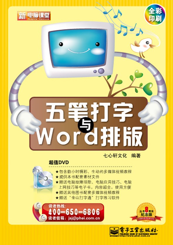 专为电脑初学者量身打造,知识点的选取完全依据电脑初学者的主流需求和接受能力。学习结构科学合理,切合初学者的特点和习惯。部分图书提供了灵活的学习计划和学习指引这一创新功能。各图书知识点融入应用案例中讲解,轻轻松松理解重点和难点。附带精彩超值的多媒体自学光盘。丛书提供贴心服务,通过热线电话和电子邮件热心帮助读者排忧解难。