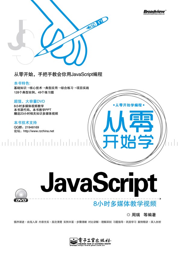 本书是一本全面介绍JavaScript,并使理论和实例尽量达到平衡,适合希望系统全面学习JavaScript的用户学习的教程。通过讲解理论知识,针对知识点结合笔者在实际工作中开发的实例,力求达到让读者轻松的学习理论知识,通过实例引导读者一步一步地在不知不觉中掌握JavaScript的相关知识和实践应用。