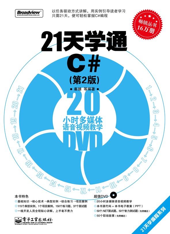 本书共有20章,从先从C#语言的基础入手,配有简单易懂的实例,由浅入深,逐步介绍了C#语言的语法基础,然后全面、通俗地介绍了面向对象编程的有关知识,并结合C#语言进行初步的实例演示,在了解相关基础知识后,从广大初学者的产场出发,讲解常用的Windows标准控件的使用,并结合实例分别对Windows Forms和Web两种不同的开发进行演示,其中还穿插了SQL数据库的基础知识。最后用两个比较全面的实例项目,总结了本书所学的内容。加深了读者朋友们学习的印象和实践认知的能力。