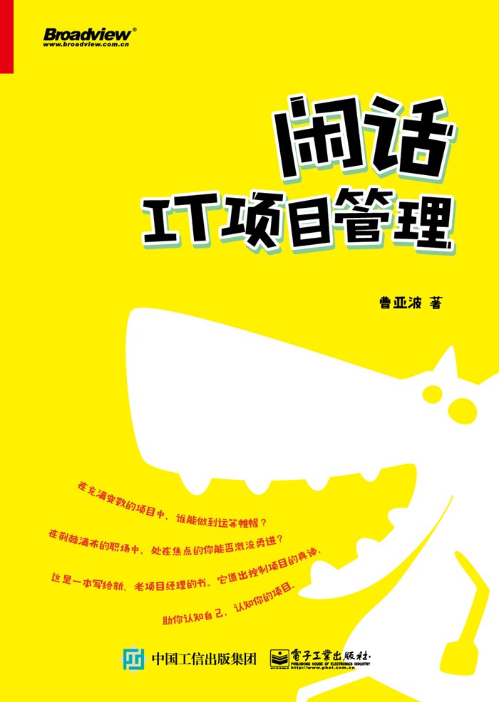 IT 项目经理是一个具有挑战性的、需要综合技能的职位。很多中国人、外国人努力从管理理论及实践认知中提取共性的东西,使它从一个工作岗位上升为一个专业学科。因此现代想从事这个职位的年轻人需要做两件事:一、考证;二、在现岗位上学些真本事。本书主要探讨的是后者。
