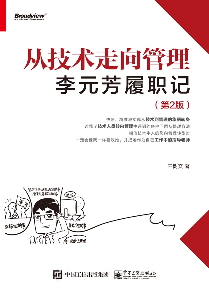 本书以小说的形式展现了主人公李元芳从技术骨干成功转型为优秀管理者的成长过程。全书分为引子、上篇、下篇、后记四个部分,分别介绍了李元芳五年半的一线技术工作及技术从业背景,从管理"菜鸟”蜕变为合格管理者的成长历程,从合格管理者蜕变为优秀管理者的成长历程,以及职业成长梦想。本书上篇和下篇中的每一节都以一个案例作为载体,阐述一项管理技能,既生动又形象。