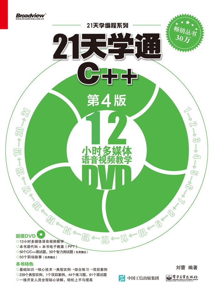 “21天学编程系列”自2009年1月上市以来一直受到广大读者的青睐。该系列中的大部分图书从一上市就登上了编程类图书销售排行榜的前列,很多大中专院校也将该系列中的一些图书作为教材使用,目前这些图书已经多次印刷、改版。可以说,“21天学编程系列”是自2009年以来国内原创计算机编程图书最有影响力的品牌之一。