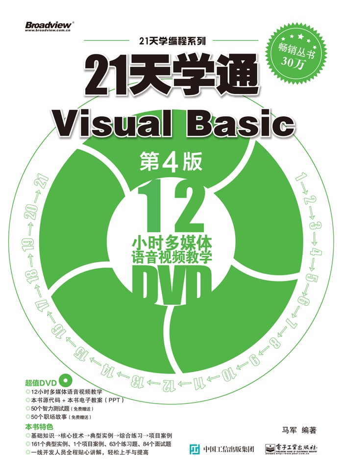 本书是VB程序设计的入门图书,从VB的基本语法结构开始,引领读者一步步掌握高级知识,同时使读者能够实现用户界面的设计、对图表的控制以及类模块的使用和对数据库的操作等高端应用。
