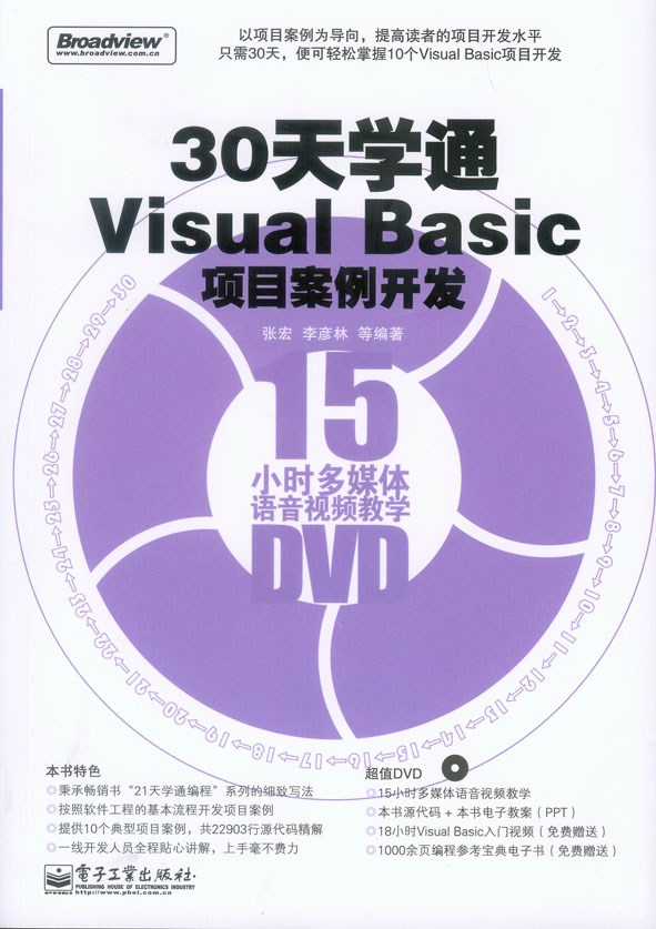 本书配有15个小时的手把手视频教学课件,大大降低了读者的学习难度。(1)实战性强,本书选用的实例都是非常经典的,具有很强的实战性;(2)技术全面,本书的10个实例应用了VB界面设计技术、ADOX技术、数据库访问技术、多媒体技术等主流技术;(3)采用面向对象的思想,本书的每个实例都采用面向对象的思想进行设计开发。