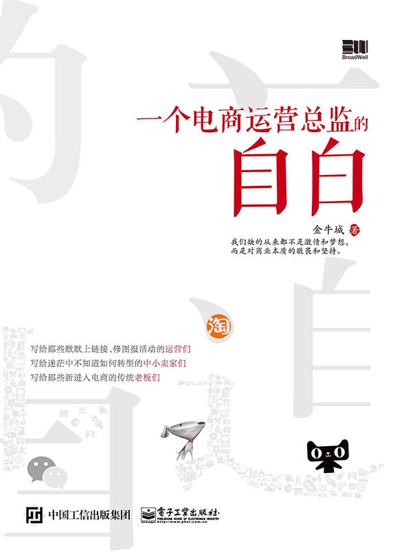 所以本书教不了你如何增加搜索UV、教不了你如何刷单不被抓、教不了你如何提高直通车ROI,也教不了你如何报名淘宝活动,凡是电商书教你的技巧,这里都是没有的。同时,我要提醒的是,看完这本书其实和看完其他任何一本书都一样,你不会在放下的一刻突然感觉打通了任督二脉,内力大增,这种故事情节如果你也相信的话,那还是直接走7天无理由退款好了,然后洗洗睡吧。