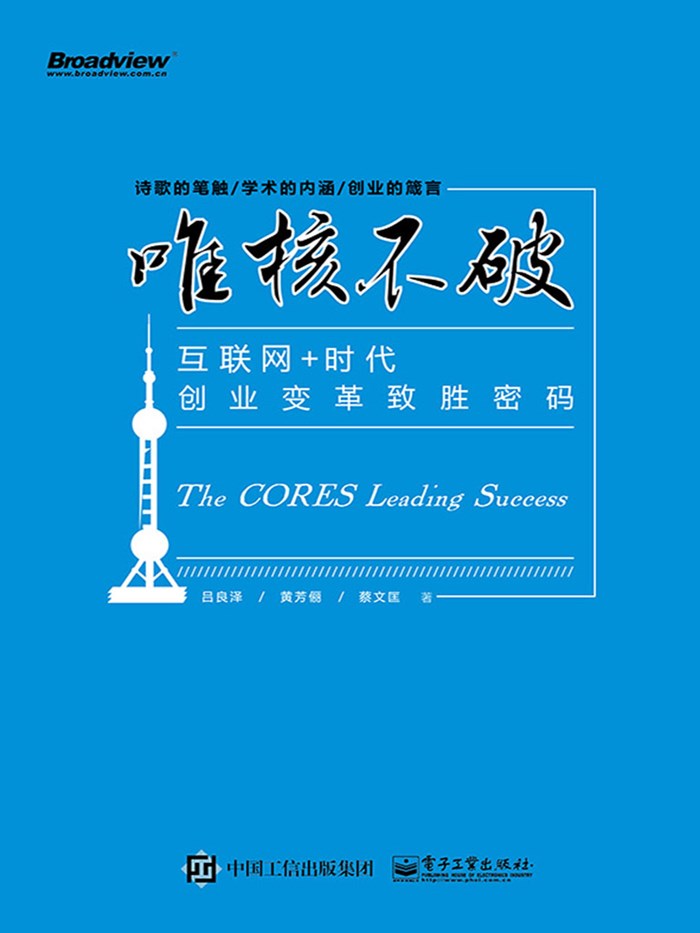 之所以书名最终定为“唯核不破”,倒不是作者刻意要加入无人知晓何人创立、谁为领导的“标题党”,而是在于本书诸如“创业前核心知识积累”、“合心且带来核心竞争力”的“合伙人”真正内含解读、“创业核心价值观”、“用户核心价值”及关注层次、“核心竞争力构建”等“核心内容”。唯有坚持这些“核心”,才是“互联网+”时代下初创企业从无到有,从小到大,立于不败之地的根本。