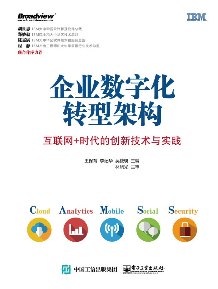 我很高兴地看到,在过去的一年中,二十余位IBM中国资深IT架构师及产品技术专家在此做了一件很有益义的工作,他们将IBM在CAMSS 领域的广泛能力以及作者团队自身多年在不同行业客户转型方案设计的最佳实践经验总结出来。当你打开手中这本书,就如同打开了数字化转型架构百宝箱,书中呈现的转型实现方法将宏观企业架构与转型方案架构有机地结合在一起,从而具有很好的可操作性和实施指南作用,同时为读者提供了企业数字化转型准备、试点、推广过程中所亟需的CAMSS转型框架、关键技术、参考架构、架构构建模块、关键成功要素和应用参考案例等丰富内容, 从而可以帮助更多的企业客户少走弯路、降低风险,相信会对企业数字化转型的顺利实现起到一个大的推动作用!