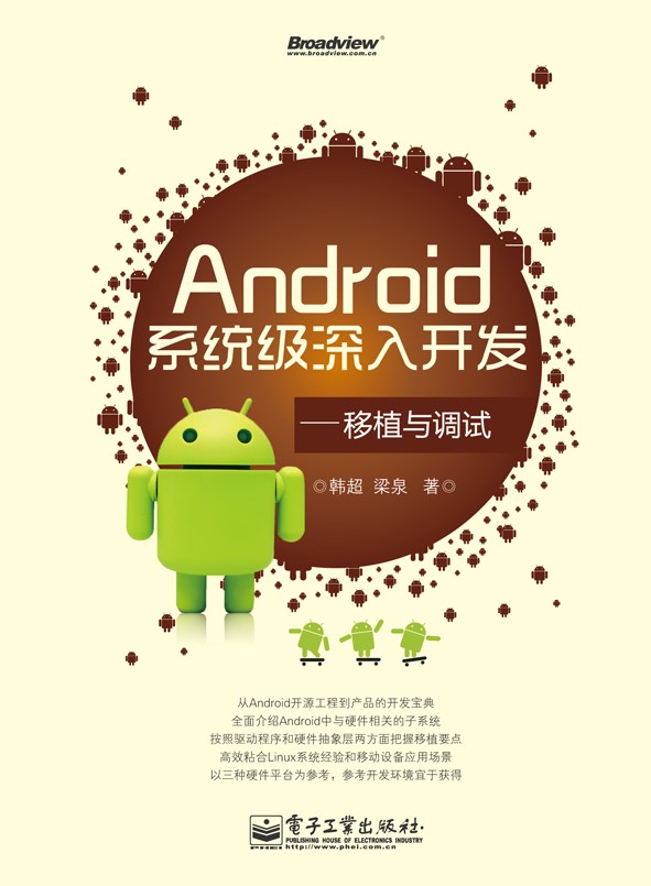 主要内容包括,Android的源代码的获取和编译、Goldfish,MSM,OMAP三种内核,基本GUI、多媒体、连接、手机附属部件、电源管理多个子系统在三种平台的移植。本书适合读者:Linux开发人员、移动设备开发人员、Android系统框架层和底层开发人员、有意图深入学习Android的人员、手机研发的公司