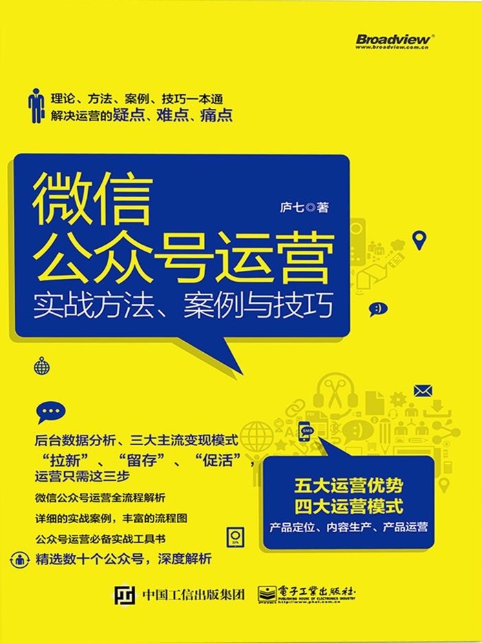书中运用了大量的、最新的公众号运营案例,以期对运营者进行指导,并在专注实战的同时,给予了策略性指导。
