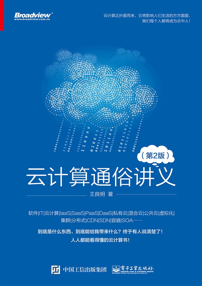 从2011年开始,云计算成为国内线上线下的热谈,政府主导的5个云计算中心浮现在国人的眼前,各种新型云计算公司如雨后春笋般涌现,许多非互联网公司也纷纷增加与云计算有关的产品线,各种云存储产品容量节节攀升。伴随而来的是云计算书籍的大量涌现,在书店和网店都占据着显著的位置。笔者从2004年开始涉足云计算,自然不会错过这些新涌现的书籍,但翻遍了这些书之后发现,这些书中堆满了各种专业术语和英文单词,很多内容都是直译外国文档资料,但都没有说清楚什么是云计算。在云计算应用风起云涌的当下,云计算、物联网和大数据的概念异常混乱,而且诸如智慧小区、智慧城市和智慧地球等新概念又不断被国人炒出来,更是让人“不识庐山真面目”了。