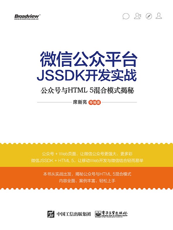 为了与时俱进,前端的读者朋友,都应该了解、学习一下微信的JSSDK,本书中介绍了微信JSSDK的示例代码、技巧和实战案例。本书主要讲解形式如下: