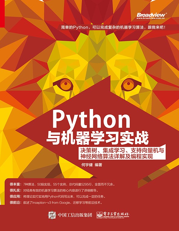 自从AlphaGo在2016年3月战胜人类围棋顶尖高手李世石后,“人工智能”“深度学习”这一类词汇就进入了大众的视野;而作为更加宽泛的一个概念——“机器学习”则多少顺势成为了从学术界到工业界都相当火热的话题。不少人可能都想尝试和体验一下“机器学习”这个可以说相当神奇的东西,不过可能又苦于不知如何下手。编著本书的目的,就是想介绍一种入门机器学习的方法。虽然市面上已经有许多机器学习的书籍,但它们大多要么过于偏重理论,要么过于偏重应用,要么过于“厚重”;本书致力于将理论与实践相结合,在讲述理论的同时,利用Python这一门简明有力的编程语言进行一系列的实践与应用。