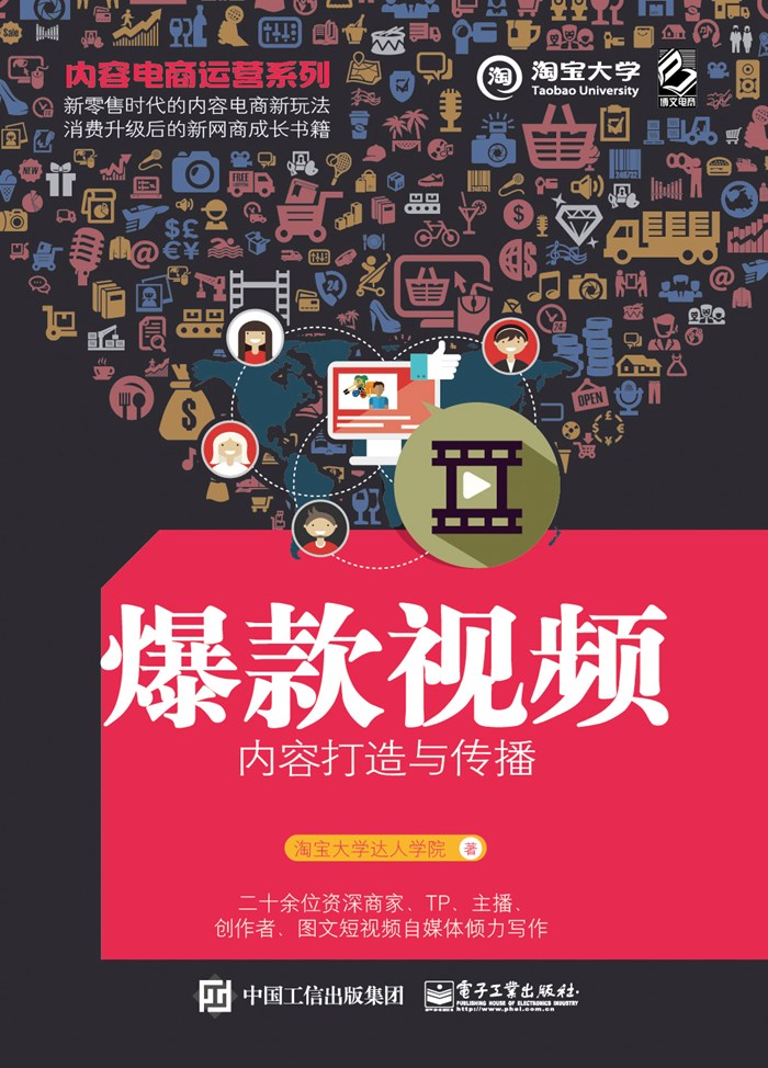 《爆款视频内容打造与传播》由淘宝大学集合淘系优秀讲师、短视频行业的领军人物编写,对内容电商运营中短视频的制作、打造、传播和运营,进行了详尽而精彩的解读。书中介绍了爆款短视频的核心元素、传播规律及实操经验和案例,并对短视频的未来愿景和发展趋势进行了深度解读,有助于读者深入浅出地了解并学会使用短视频来做好内容电商运营工作。