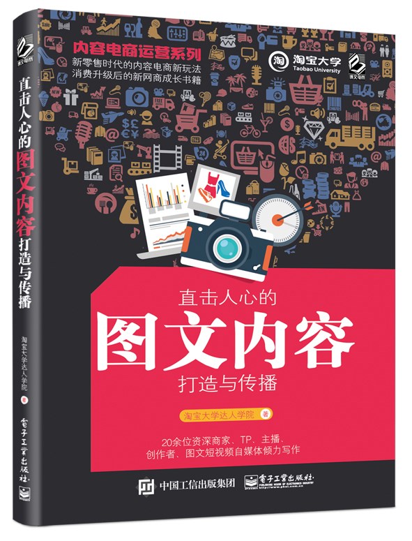 “内容电商运营系列”是由淘宝大学达人学院集合淘系优秀达人讲师编写,对于内容电商知识进行更加细致合理的规划设计,更加符合移动电商时代读者的知识需求。该系列首批更新的书包括《淘宝直播运营与主播修炼手册》《爆款视频内容打造与传播》《直击人心的图文内容打造与传播》。经过移动互联网时代这几年的发展,“内容”这个词已经变成了一种行业、风向和投资热门。