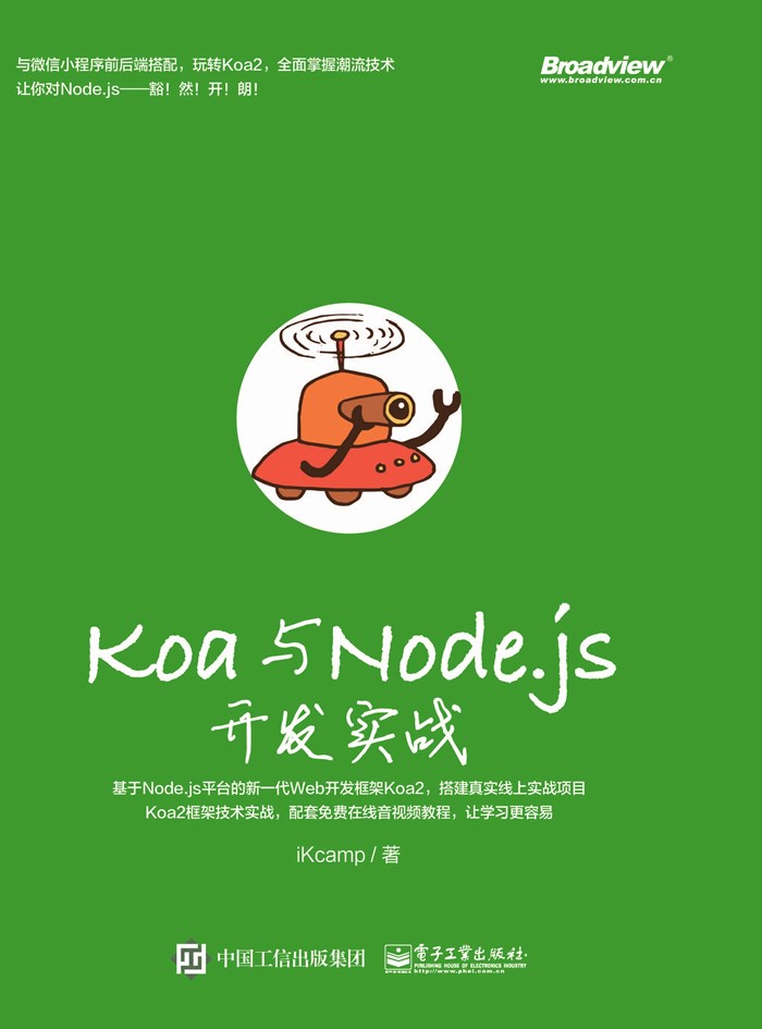 本书系统讲解了在实战项目中使用Koa框架开发Web应用的流程和步骤。第1章介绍Node.js的安装、开发工具及调试。第2章和第3章介绍搭建Koa实战项目的雏形。第4章详细介绍HTTP基础知识及其实战应用。第5章介绍MVC、模板引擎和文件上传等实用功能。第6~8章介绍数据库、单元测试及项目的优化与部署。第9~13章介绍从零开始搭建时下火爆的微信小程序前端及后台管理应用的全部过程,以及最终的服务器部署,包括HTTPS、Nginx。