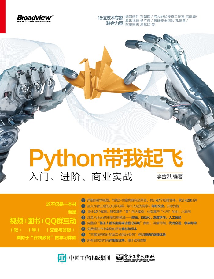 【特色1 详细的教学视频】: 共计47段,累计429分钟 ,与第2-10章内容完全同步;【特色2 可加入作者主理的QQ学习群】:加入作者主理的QQ学习群,与千人成为同学,即时交流,共享资源。读者可在其中提问,作者会答疑;【特色3 通过大量的案例进行讲解:共计42个案例。】★(1)有基于“二、三级标题”级的中、小案例,如下: /3.6 实例2:封装获取系统信息模块,并将其导入 /4.3.3 实例3:演示Python的缓存机制 /4.3.5 实例4:演示“位运算符”的使用 ;★(2)有“章”级的大案例,如下:/第11章 Python爬虫实战:批量采集股票数据,并持久化到excel中 /第12章 Python自动化实战:读取excel数据文件,并用可视化分析 /第13章 机器学习实战:从一组看似混乱的数据中找出y≈2x的规律。【特色4 涉及的Python最火的四大领域】 爬虫实战、 机器学习实战 、人工智能实战、 自动化实战;【特色5 完整的“基于人脸识别的来访登记系统”案例 讲解详细 代码全送,拿来即用