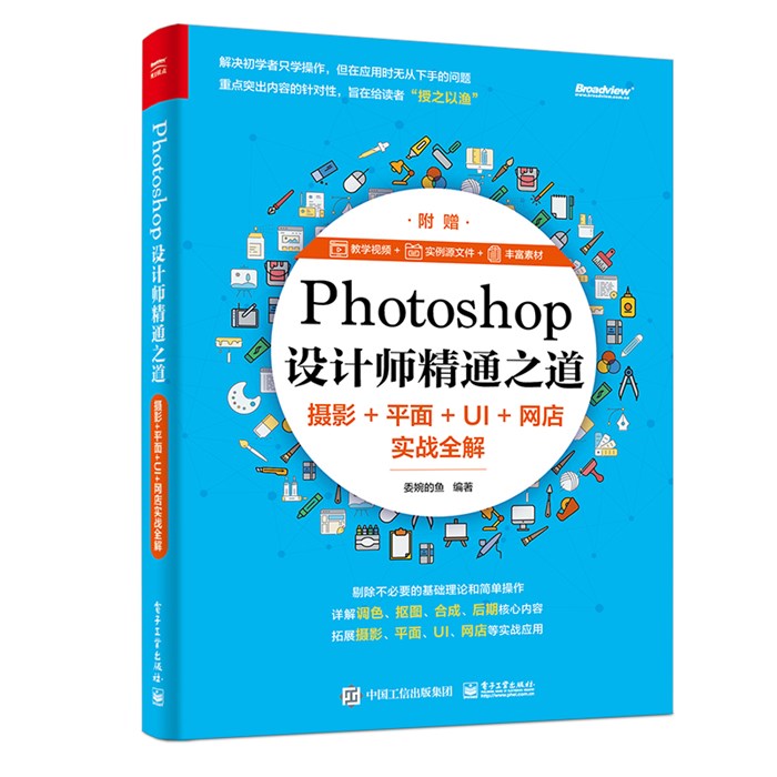 本书共 9 章,遵循循序渐进的原则安排了学习内容,从简到难,从理论到应用,确保读者可以轻松、快速入门:第 1 章讲解了 Photoshop 的起源及用途;第 2 章讲解了 Photoshop 的各种抠图技法;第 3 章讲解了色彩的基本知识及相关的调色命令,并一一列举了练习案例;第 4、5 章讲解了图像的合成及特效制作;第 6 章讲解了摄影后期;第 7~9 章,讲解了平面设计、UI 界面设计及网店设计等 Photoshop 的综合应用。