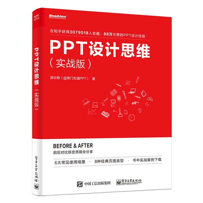 这本书采用Before-After 的形式,来把 PPT 修改的过程写出来,不仅分析原稿所存在的问题,而且,会有针对性地提出解决方案,并附上基于修改思路处理后的PPT页面。