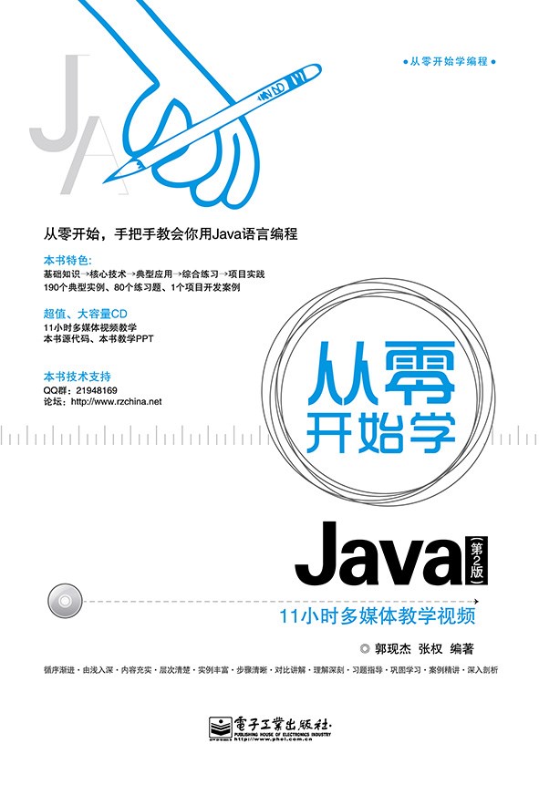 本书从Java 语言的发展、开发环境及基本语法知识入手,逐步介绍了Java 的基本概念、面向对象基础、图形界面程序的开发、网络程序开发及数据库应用程序的开发,让读者在没有编程基础的情况下,能够很快掌握Java 语言编程的各种技术。